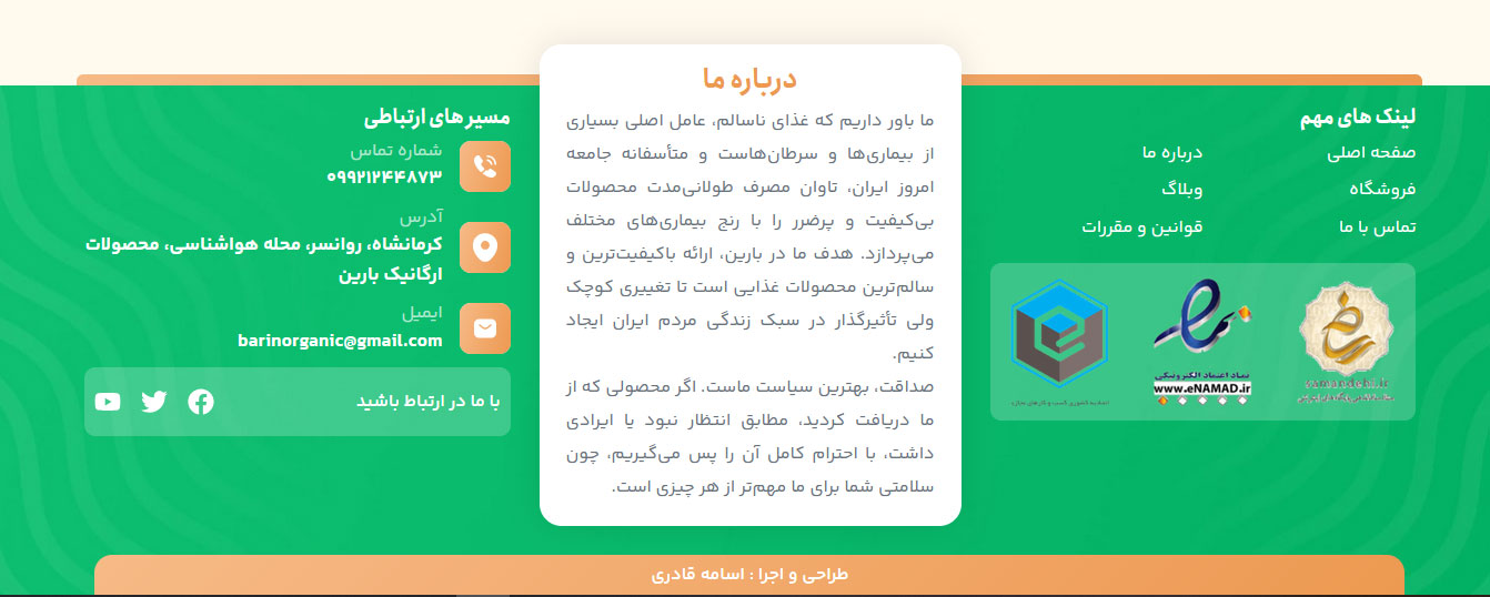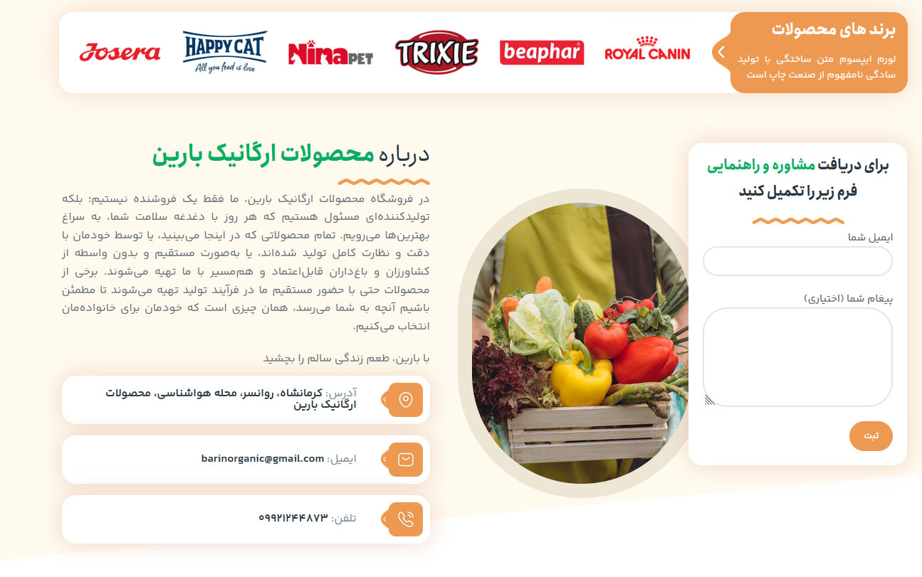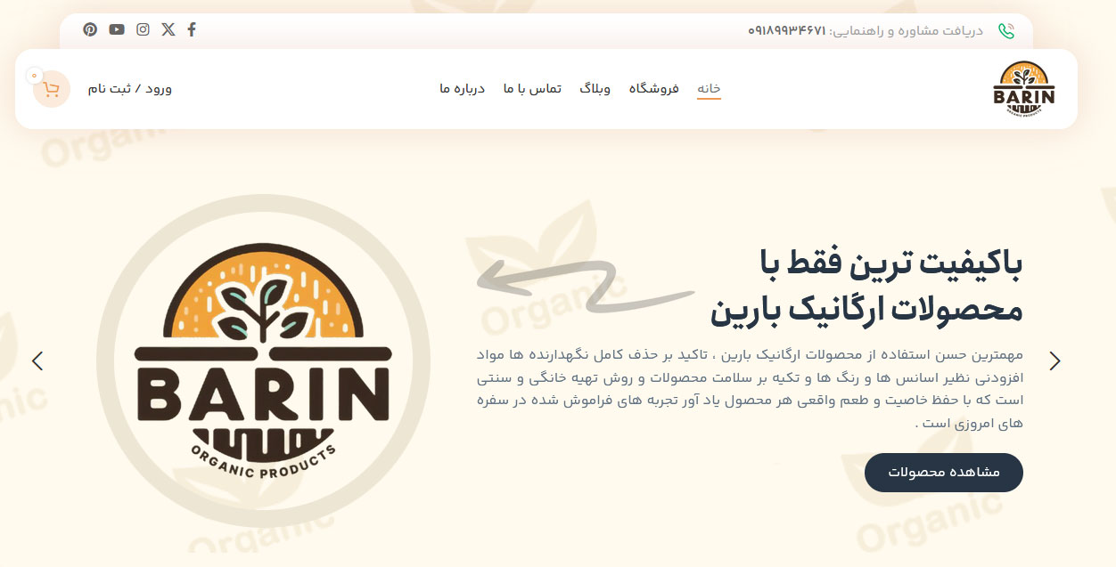 در فروشگاه محصولات ارگانیک بارین، ما فقط یک فروشنده نیستیم؛ بلکه تولیدکننده‌ای مسئول هستیم که هر روز با دغدغه سلامت شما، به سراغ بهترین‌ها می‌رویم. تمام محصولاتی که در اینجا می‌بینید، یا توسط خودمان با دقت و نظارت کامل تولید شده‌اند، یا به‌صورت مستقیم و بدون واسطه از کشاورزان و باغ‌داران قابل‌اعتماد و هم‌مسیر با ما تهیه می‌شوند. برخی از محصولات حتی با حضور مستقیم ما در فرآیند تولید تهیه می‌شوند تا مطمئن باشیم آنچه به شما می‌رسد، همان چیزی است که خودمان برای خانواده‌مان انتخاب می‌کنیم.