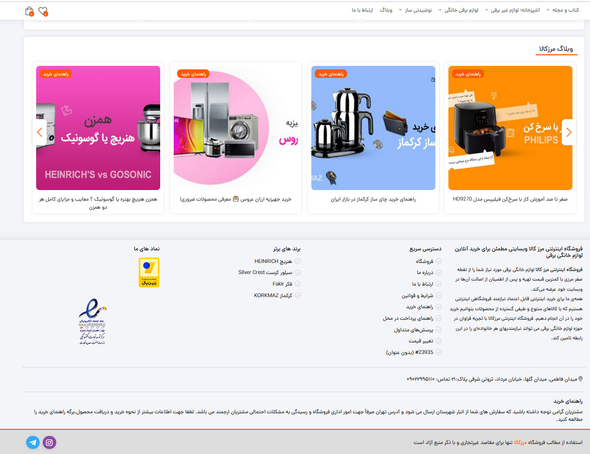 فروشگاه اینترنتی مرز کالا وبسایتی مطمئن برای خرید آنلاین لوازم خانگی برقی